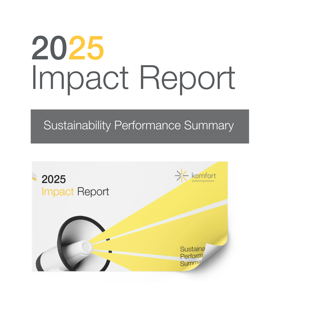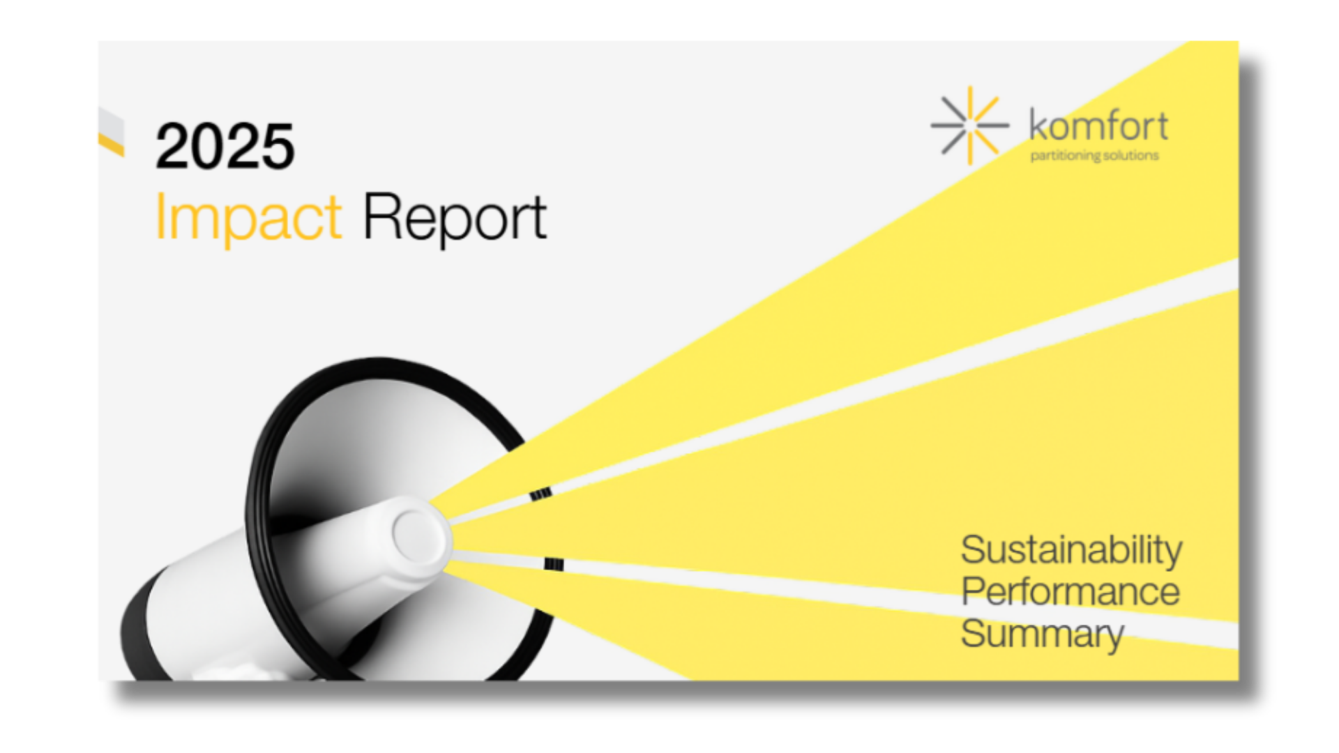 Sustainability is a core pillar of our strategy and long-term success. At Komfort Partitioning, we are committed to environmental stewardship, social responsibility and ethical governance. Our latest 2025 Impact Report reflects our ongoing journey to integrate sustainable practices into every facet of our operations while maintaining full transparency.
