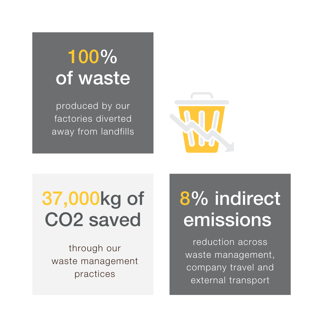 Zero Landfill: For two consecutive years, 100% of waste from our factories has been diverted from landfill.