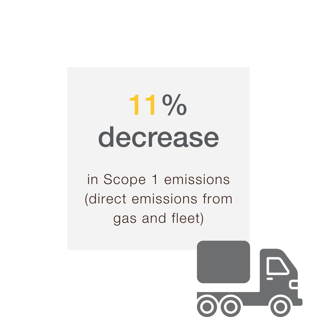Scope 1 (Direct Emissions): An 11% decrease (from 507 to 452 tonnes) achieved through smarter fleet management and gas usage.