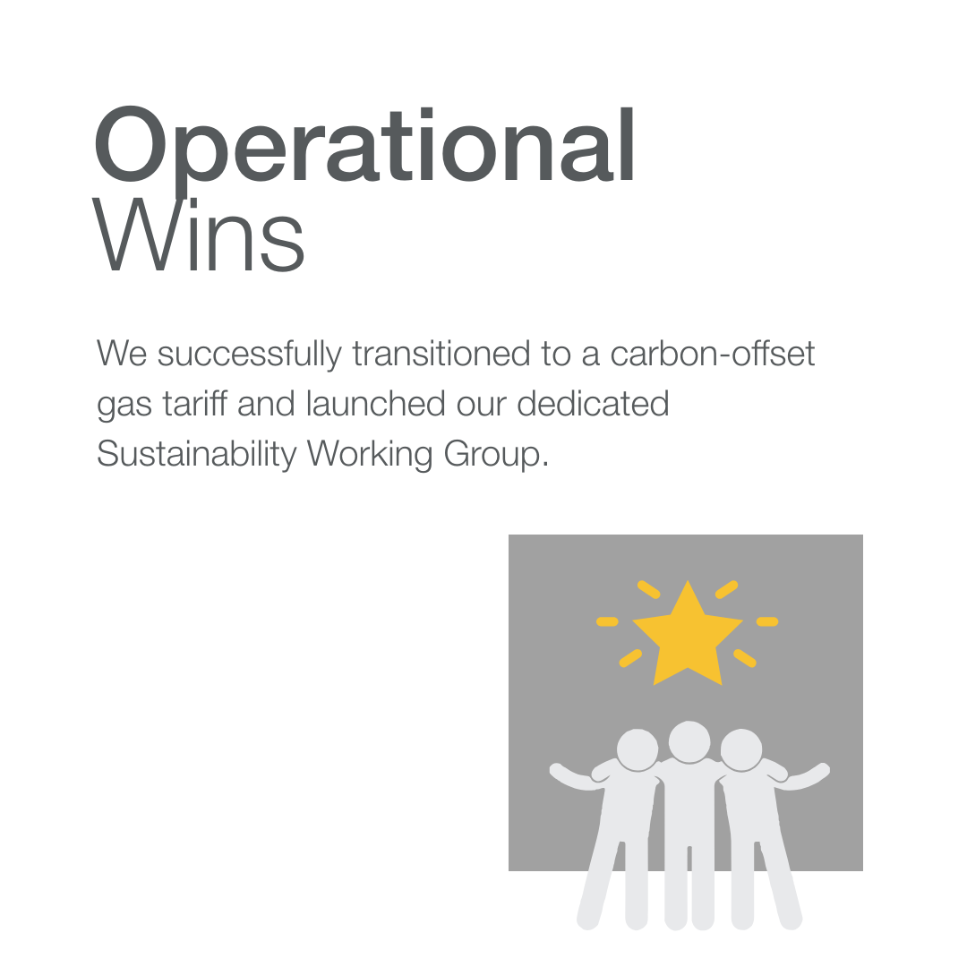 Operational Triumphs: We successfully moved our gas supply to a carbon offset tariff and established a dedicated Sustainability Working Group to drive internal change.