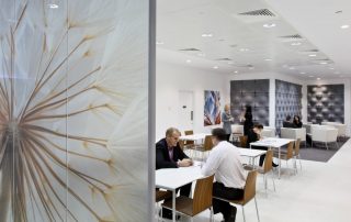Visually inspire with limitless designs, colours and styles. For manifestations the printed design is adhered to the glass; for digitally printed glass the design is printed directly onto the glass; for etched glass the designs are etched into the glass. Bring glass partitions to life in a completely unique and characterful way.